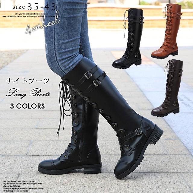ナイトブーツ マーティンブーツ レディース ロングブーツ 膝下丈 靴紐 レザーブーツ 革靴 かっこいい スタイリッシュ 代 30代 40代 Yuhin 通販 Yahoo ショッピング